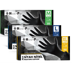 Haspet Nitril Muayene Eldiveni Pudrasız Siyah 50 'li PAKET EKSRA KALIN